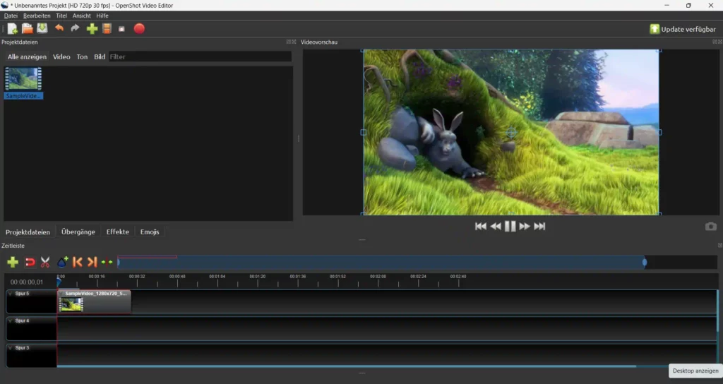 Video 640 x 360 Pixel, mit HandBrake aus dem oberen 1280er Video erstellt. Größe 2,24 MB